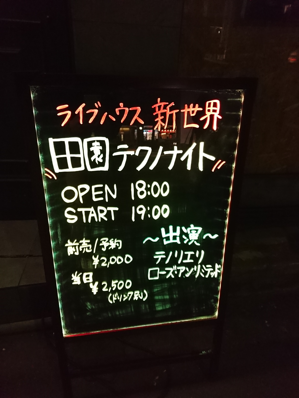 2/24は田園テクノナイト@六本木新世界へ。