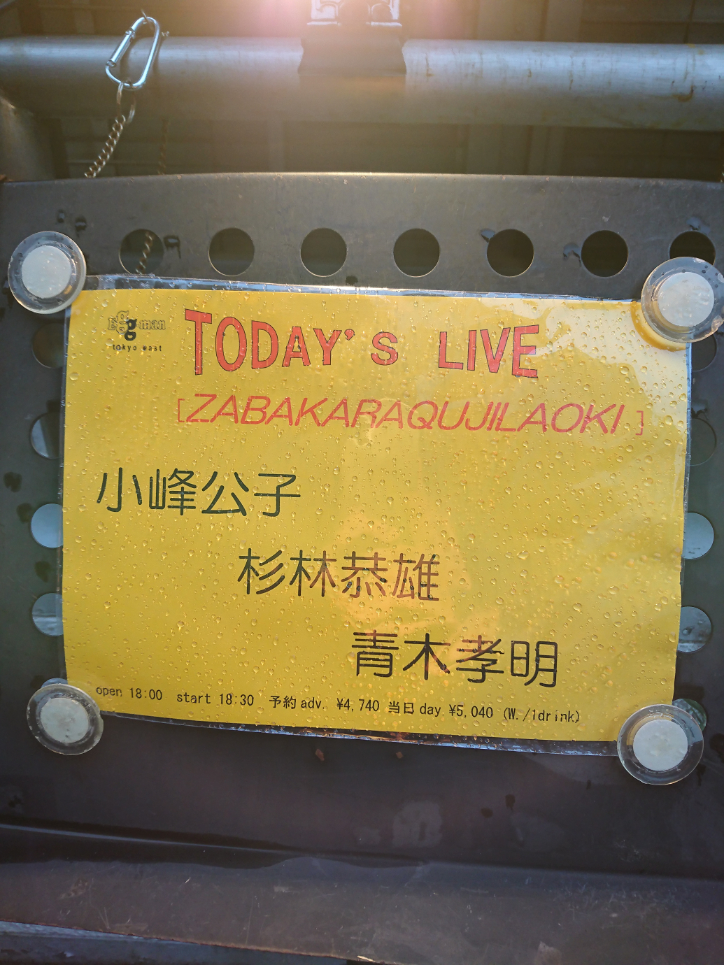 なんだか年末な感じもしてしまう、ZABAKARAQUJILAOKIのライブへ 。でも今回は楠均(NOX)さんと吉良草太郎さんは欠席。